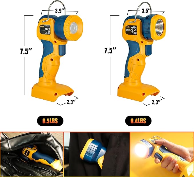 - COMPACT & LIGHTWEIGHT: Body length of 7.5’’, body weight of 0.4 ~ 0.5LBS, the spotlights is compact to take around and easy to store