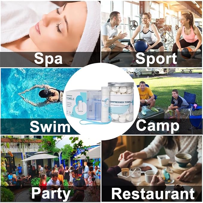 - 【Multiple Uses】You can use compressed towels indoors such as kitchen, hotel, bathroom, office and so on. It is also suitable in outdoors, for example, travel, camping, the similar outdoor activities and business occasions and so forth.