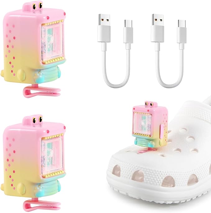Dinosaur Lights for Croc, 2Pcs USB Rechargeable Headlights for Clogs, Flashlight for Night Walking, Camping, Walking Dog (Pink)
