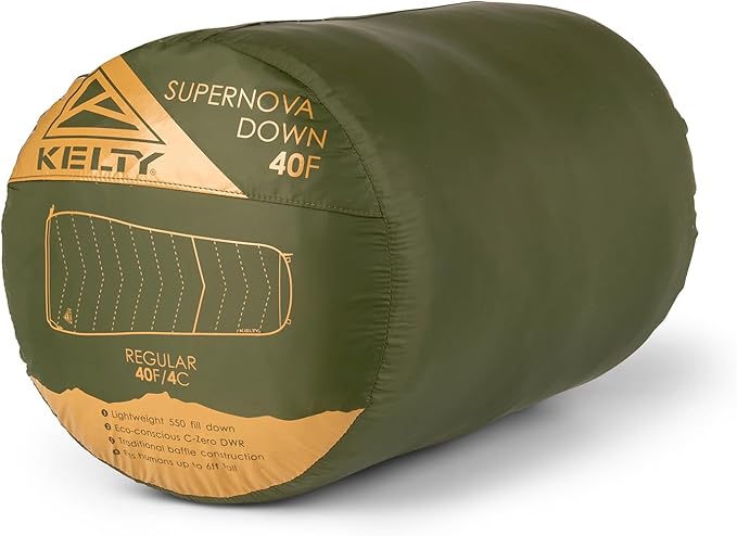 Kelty Supernova Down Sleeping Bag, Compact + Lightweight, Roomy Shape for All Body Types and Sleep Positions, Recycled Shell Fabrics
