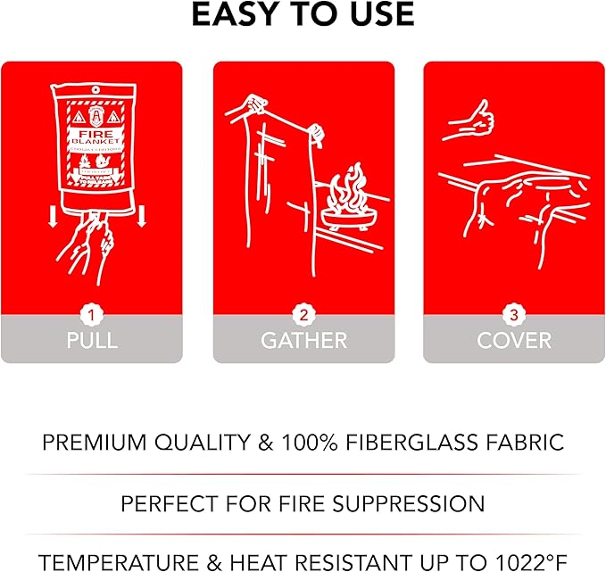 - 🚒🔥👨🏻🚒 ✅ Durable and High-Temperature Resistant: Crafted with premium, flame-retardant woven fiberglass cloth, this fire blanket withstands extreme temperatures up to 1076°F (580°C). It's a resilient hero blanket, adhering to CE safety standards and outperforming many small fire extinguishers in durability.