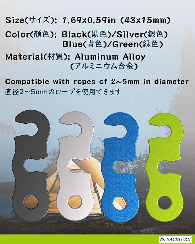- ✅HIGH-QUALITY AND DURABLE ROPE TENSIONER - Replaces the cheap plastic cord tensor you already have on your camping and outdoor equipment, and say hello to these amazing, compact, and durable guy lines tensioner tent cords made of quality aluminum alloy which is ultralight, and convenient to carry in your backpack on a camping.