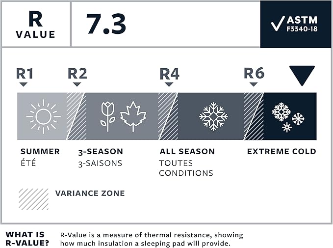 - Reflective ThermaCapture technology traps radiant heat while the Triangular Core Matrix construction minimizes convective heat loss providing a 7.3 R-value, ideal for extreme conditions