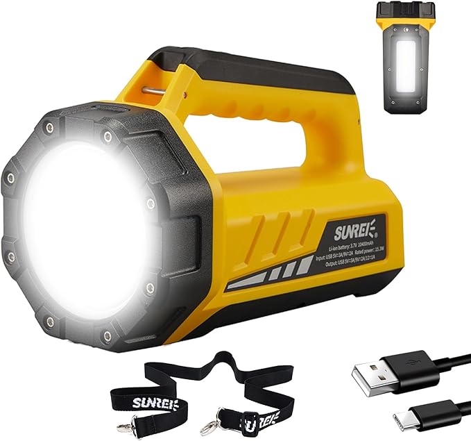 SUNREI Rechargeable LED 1200LM Flashlight, 8 Light Modes Portable Camping Lantern, 10400mAh Power Bank, IP67 Waterproof for Emergencies Power Outages, Hurricane Emergency, Hiking, Home, etc