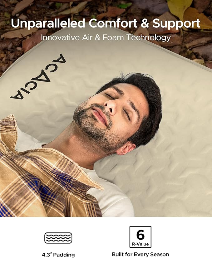 ACACIA 4.3" Thick Self Inflating Sleeping Pad with Foam | Innovative Y-Shaped Telescopic Structure | Ultraportable Camping Mattress | Outdoor Compact Air Mat for Tent Car |