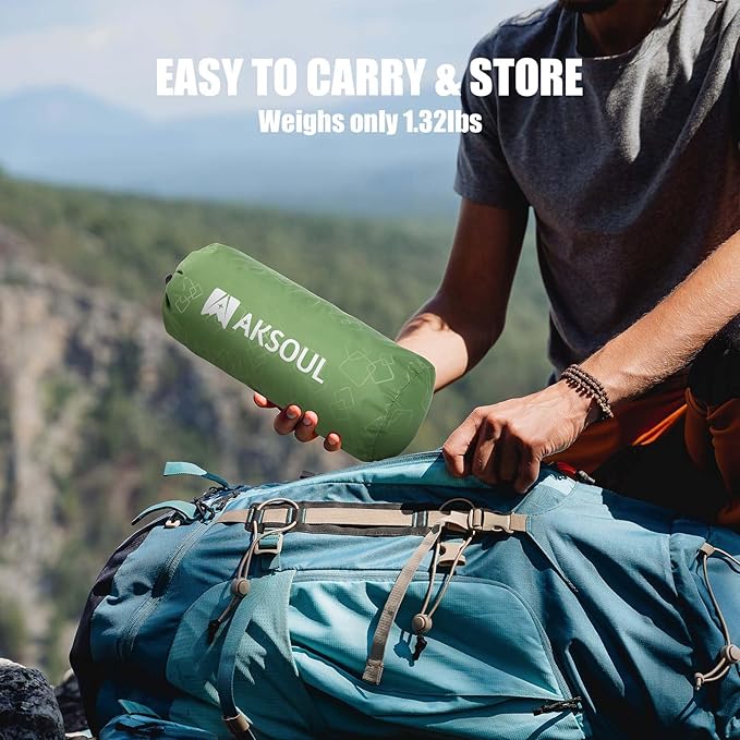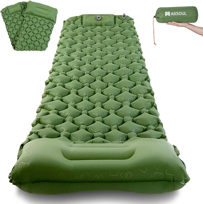 AKSOUL Camping Ultralight Sleeping Pad: Compact Portable Self Inflatable Sleep Mat with Built-in Foot Pump, Lightweight Single Pad for Camping, Traveling, Outdoor Activities (Green)