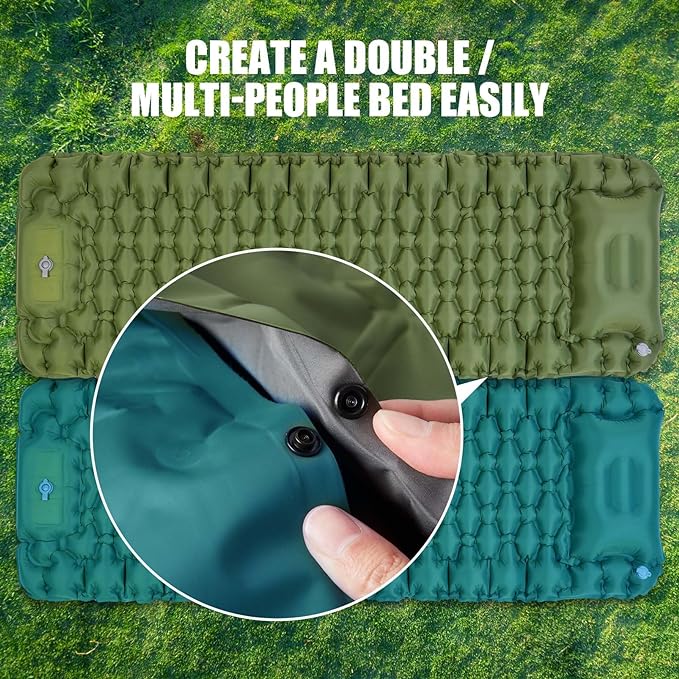 - 【△△△Connectable Double Camping Pad Design△△△】: there are connection buttons on both sides of the air bed, which can seamlessly connect multiple air beds. Just close the button to instantly create a double/multiple camping sleeping mat. Multiple inflatable sleeping mat camping together to create a larger sleeping area for group camping trips, ideal for couples or friends on outdoor trips