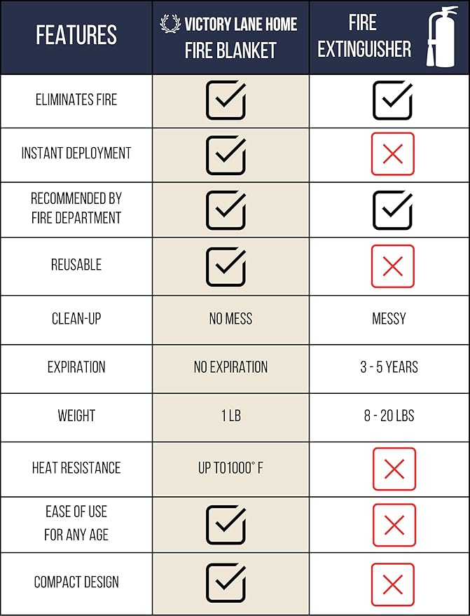 - Reliable Fire Response - With top reviews, the Victory Lane Home Fire Blanket is a trusted choice for fire emergencies, ensuring quick and effective extinguishing action when you need it most. Unlike traditional fire extinguishers, these fire blankets do not expire and leave no residue, making them a reliable, clean, and safe option for your needs.