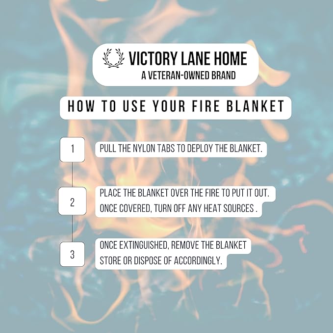 - Optimal Safety - The Victory Lane Home Emergency Fire Blanket is a must-have fire safety tool for every household, vehicle, and RV. Designed to smother flames quickly and effectively, it's ideal for kitchen fires and other domestic emergencies.