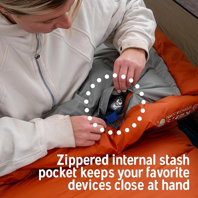 Kelty Supernova Down Sleeping Bag, Compact + Lightweight, Roomy Shape for All Body Types and Sleep Positions, Recycled Shell Fabrics