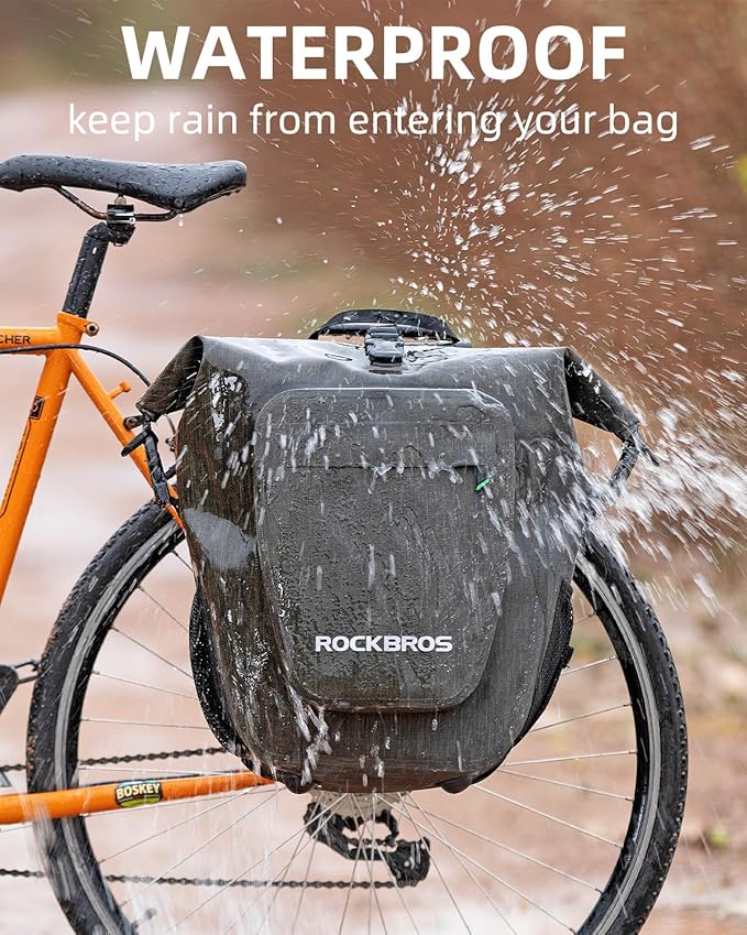 - FULLY WATERPROOF: This bike pannier bag made with High density 840D Nylon and covered with TPU film which ensure you can use this bag freely on rainy day or wet weather without worrying about your items getting wet inside the bag or scratched. The bag's surface is easy to clean and can be wiped clean with a wet cloth in seconds without fear of muddy roads.