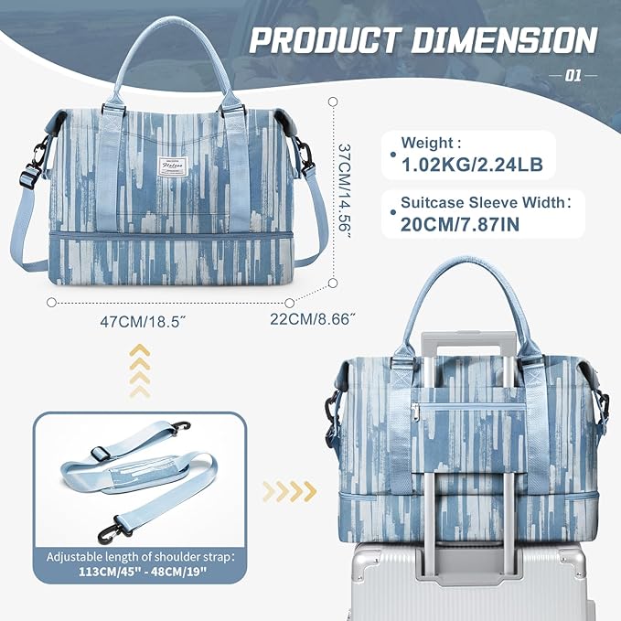 - Extra Points Duffel Bag: The travel bags for women come with a removable adjustable strap, you can carry it as shoulder bag,handbag or cross bag as you like.The weekender bags for women made of high quality tear and water resistant nylon fabric