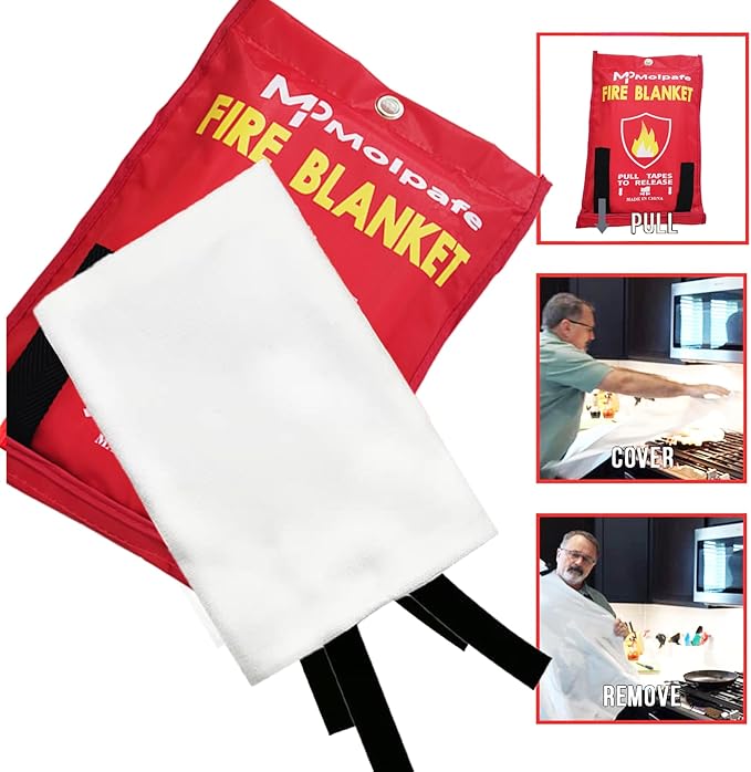 - 【Fire proof and resistant to high temperatures】An essential tool to aid in house fire prevention, extinguish heat alarming fast by shielding oxygen away from burning embers. An emergency fire blanket is a must have in your house fire safety kit and car survival kit for protection.