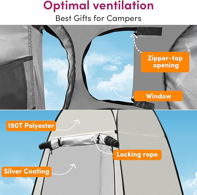 - VERSATILE USE: Your choice camping shower tent affords a private, clean space anywhere and anytime. You can take it to the beach, camping, on a road trip, photo shoots, dance class, campground or anywhere you need to quickly change clothing, kids playing, camping shower, camping toilet, etc. It is your perfect travel accessory.