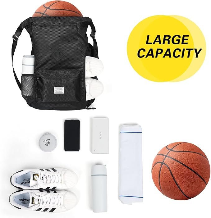 - Large Capacity: Size 47 x 15 x 34 cm / 18.50 x 5.91 x 13.39 inch, lightweight and suitable size. It can hold sports gears or daily necessities, such as basketball,sportswear,gloves,towels,swimming gears, umbrella,phone,wallet,daily necessities,etc