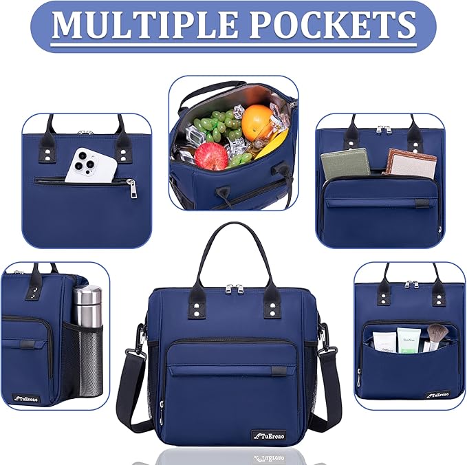 - PORTABLE & CONVENIENCE: TuErcao insulated lunch box features one reinforced handle on top for carrying as a handbag or tote bag. And comes with a detachable & adjustable shoulder strap which can be adjusted from 15" to 27" for carrying as a shoulder bag or crossbody bag
