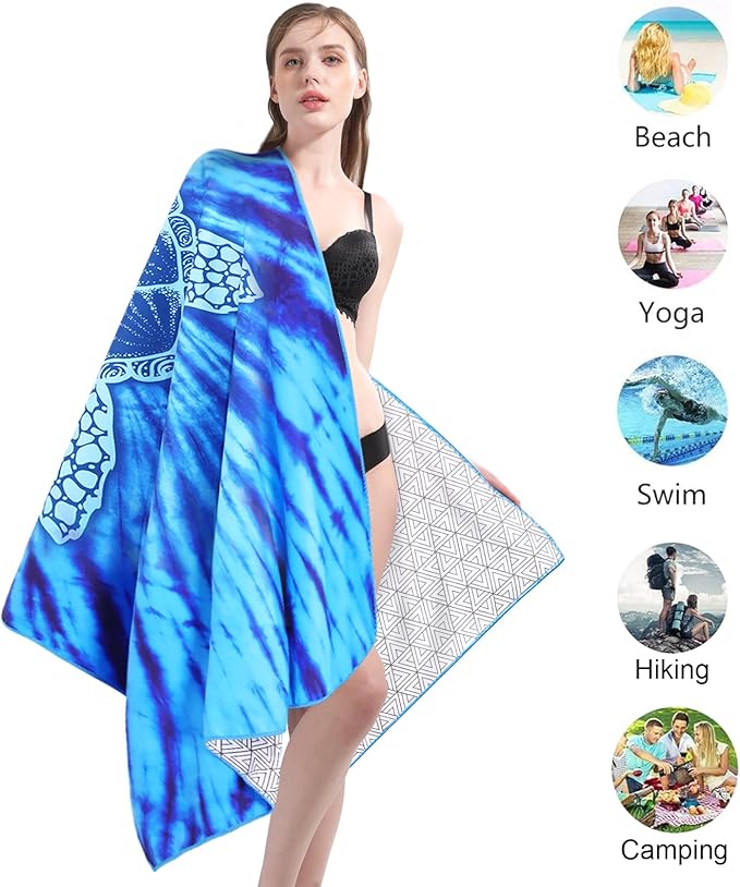 Microfiber Lightweight Thin Beach Towel Sandproof Compact Clearance Towels Quick Dry Sand Free Pool Swim Fast Drying Sandless Blanket Travel Essentials Accessories Vacation Women Men Adult Gift Turtle