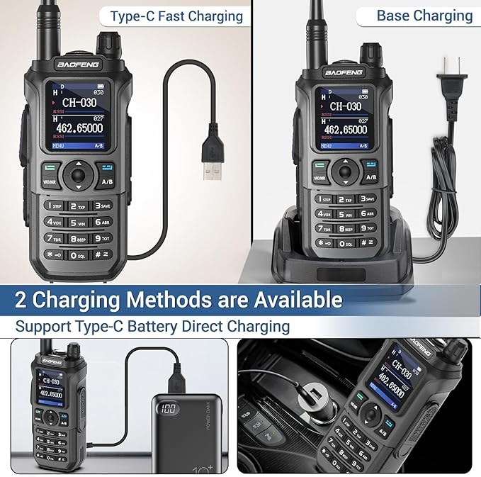 - ✅【USB-C +Desktop Charger】 The Type-C charging port is designed on the back of the battery. Two charging methods making convenient for you to charge anytime and anywhere. When you go out, you can charge your walkie talkie on the car, power bank, laptop, wall or any USB interface device, no longer worrying about battery life issues.