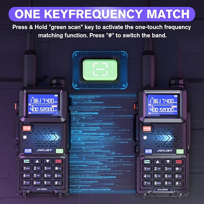 - 【One Key Frequency Match】Easily decipher the frequency of another amateur walkie talkie without the need for computer programming,Convenient for you and your partner to set up quickly.