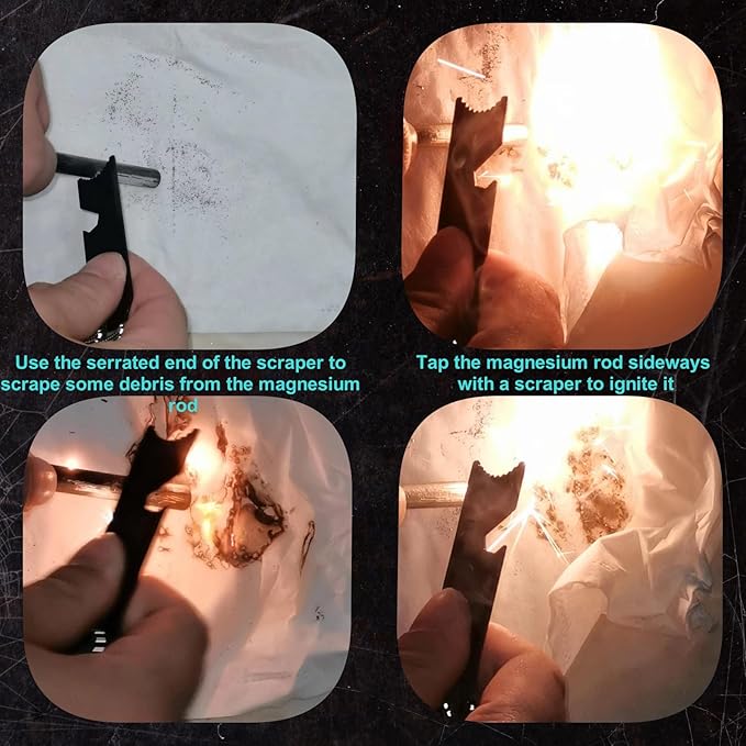 - 【You Will Get】Our flint and steel fire starter includes a 5/16" thick ferro Rod, 1 pcs umbrella rope and a multipurpose 6-in-1 flint striker scraper, that can be used as a ruler, bottle opener, hex wrench, map scaler and tinder scraper.