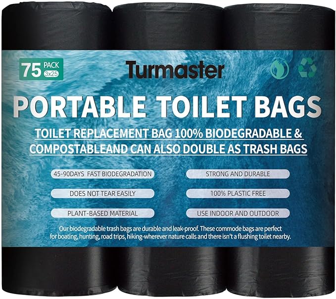 - What you will get: the portable toilet bags package contains 3 rolls, 25 packs per roll, you will get 75 camping toilet bags, our Portable toilet bags are upgraded and thickened, you can get more and better quality for less money. If you have any problems using our bucket toilet bag, please contact us.