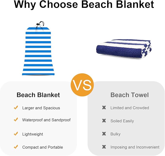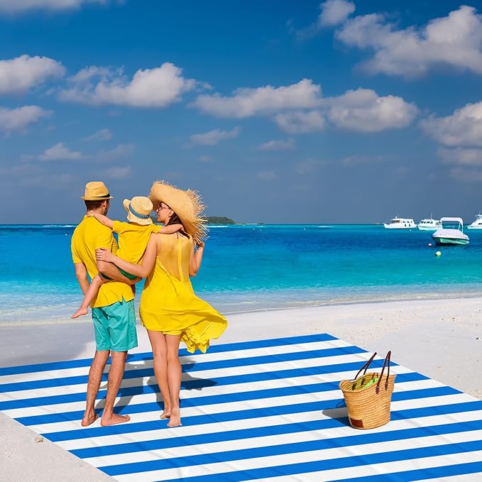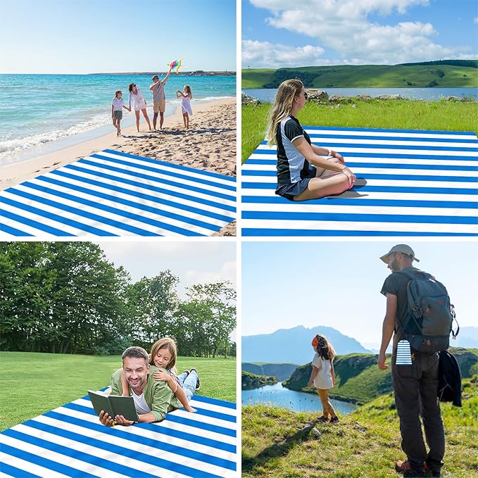 - Outdoor Versatility: Beyond the beach, these versatile outdoor blankets are perfect for travel, picnics, camping, and hiking. With eyecatching blue & white stripe design, you can quick spot these blankets, with a choice of modern minimalist style.