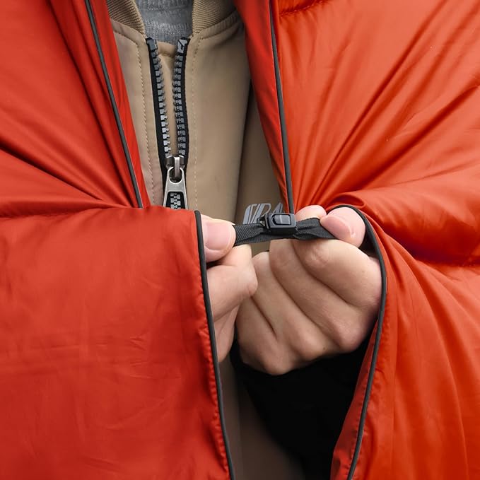 - Functional Designs: The poncho clip or snaps design could transform the puffy camping blanket into a cloak and make your hands available while you are drinking, eating, chatting or doing some campsite tasks and still keep you warm. Loops at the four corners allow you to stake the blanket into the ground and you can use it as a picnic mat and lie down. Attention: two versions of quilted lines are sent in random. Please kindly accept it