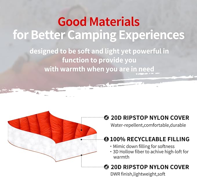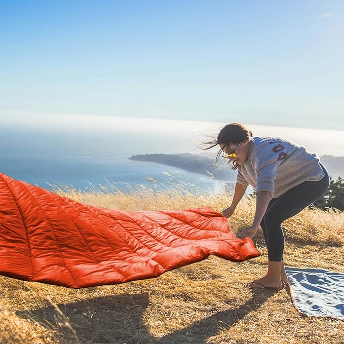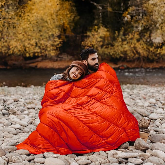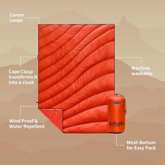 - Water Repellent & Easy Care: Made from nylon coated shell, the down-like camping blanket can withstand water, sand, dirty, wind and etc. Even if you are in a windy condition, warmth is still around you. As for cleaning, just wipe it with wet wipes for light stain. Machine wash on a gentle cycle low is better for deeper cleaning