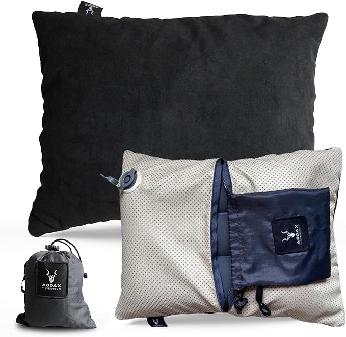 - The Comfort of Home: This luxury hybrid camp pillow offers a soft microsuede cover and a polyester filled cushion in combination with an inflatable insert for optimal neck support.