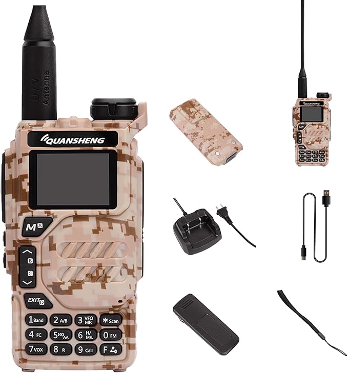 Quansheng UV-K5 Radio USB-C Charging Dual Band Two Way Radio Long Range for Adult 5W Long Range Handheld Radio NOAA Scrambler/DTMF One Key Copy Desert Camo