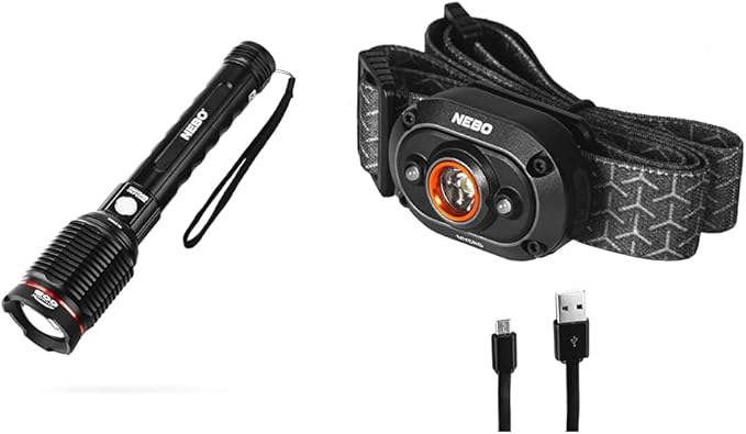 NEBO Redline 6K 6000-Lumen LED Rechargeable Bright Flashlight for EDC, Camping, Hunting, Hiking & MYCRO USB 400 Lumen Rechargeable, Adjustable LED Headlamp & Cap, Bright Spot Light for Camping