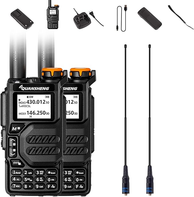 2 Packs Quansheng UV-K5 Radio USB-C Charging Dual Band Two Way Radio Long Range for Adult 5W Long Range Handheld Radio NOAA Scrambler/DTMF One Key Copy with 771 Antenna