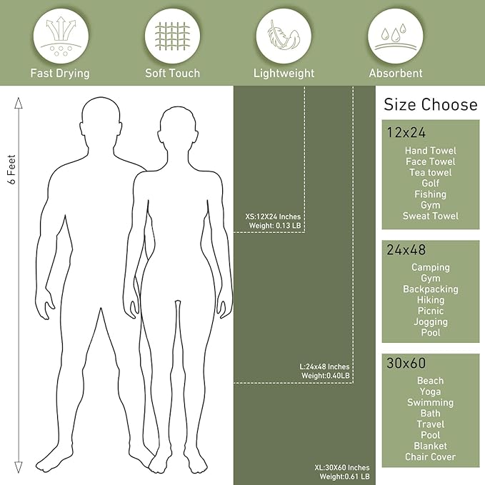 SZHLUX Microfiber Towel, Perfect Quick Dry Travel Sports Camping Towel,Fast Drying Lightweight Ultra Compact for Backpacking,Gym,Beach,Swimming,Yoga(Army Green,XL)