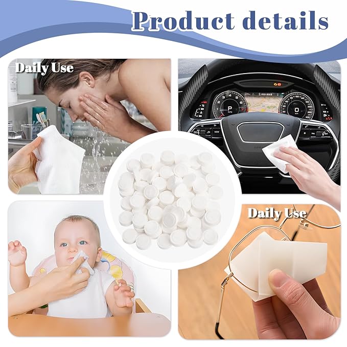- VERSATILE USAGE - Our portable mini compressed camping towels are ideal for wiping eyeglasses, dining tables, cars, wound dressing, makeup removal, and more. These coin tissues are sanitary, safe, and perfect for various occasions including kitchens, hotels, salons, bathrooms, offices, hiking, camping, traveling, and beyond.