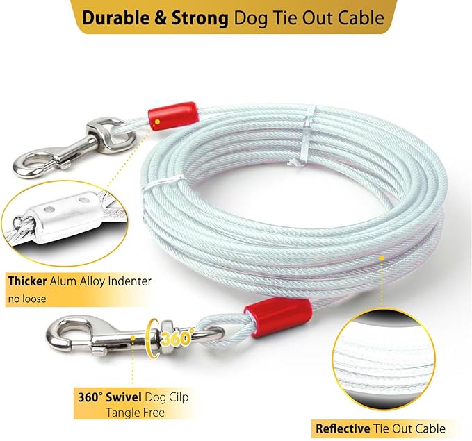 360° Swivel Dog Tie Out Stake and Cable for Small to Large Dogs Up to 150lbs - 30 ft Dog Yard Leash and Stake with 5 Strong Tether Holds 1000lbs of Pull Force for Yard Camping Outdoor - 30 ft Cable…