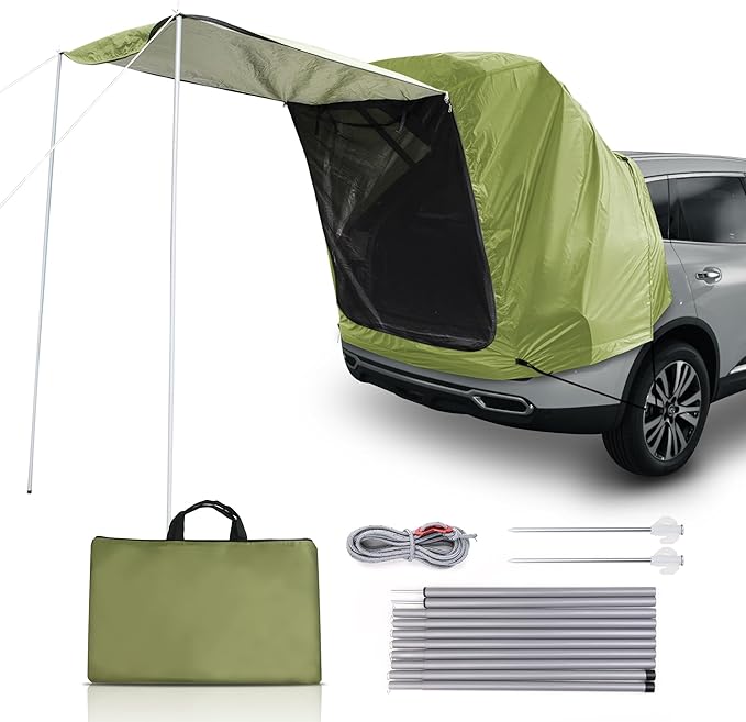 BUMBEE SUV Tailgate Tent Car Roof Canopy and Poles with Awning Shade, Outdoor Hatchback Rear Shelter, Roof Canopy, Waterproof Bug Protection, Fits for MPVs CUVs Van, Green