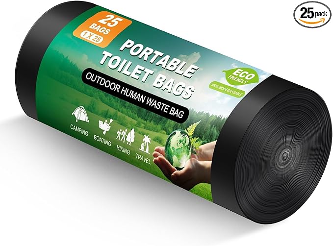 25 Portable Toilet Bags, Thick Biodegradable Camping Toilet Bags for Portable Potty, 8 Gal Compost Toilet Waste Bags Potty Bags for 5 Gallon Bucket Toilet Seat Adults Outdoor, 1.1 Mil