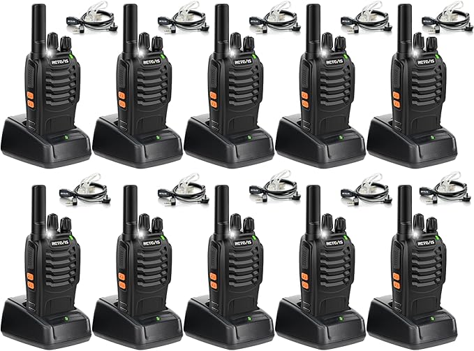 Retevis H-777 2 Way Radios,Walkie Talkies with Earpiece,Rechargeable Long Range Two Way Radio,Shock Resistant, Emergency Alarm,Short Antenna for Restruant School Construction Site (10 Pack)
