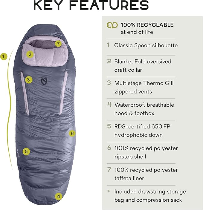 - Temperature Rating : ISO Comfort: 17F / -8C, ISO Limit: 4F / -16C