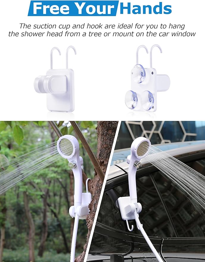 - Compact & Easy to Use: innhom camping shower kit comes with a convenient mesh storage bag, weights only 2 ponds, make it easy to storage and carry . Simply attach the camp shower pump with portable shower head, fully immerse the pump to the water and press the button to start. This electric and rechargeable pump comes with 4 small suction cups at the bottom to ensure it firmly fixes to any water container, effectively preventing tilting or floating .