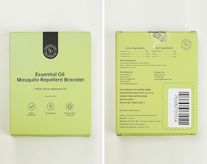 - Natural Citronella Bracelets: Our mosquito bands are made with: Geraniol Oil, Lemongrass Oil and Citronella Oil