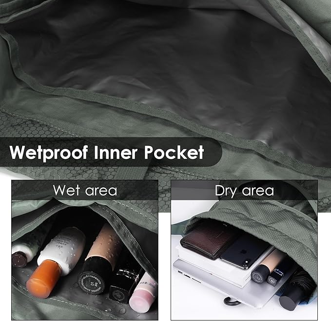 - 【Dry/Wet Separation】The draw string bag adopts a multi-pocket design and has a wet bag inside,which can easily separate wet clothes,towels,toiletries,cold drinks and other moist items,and keep other items dry