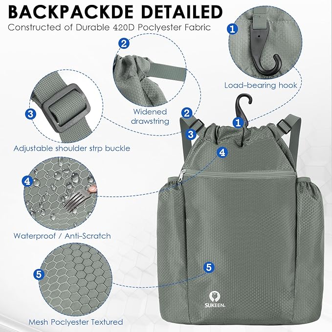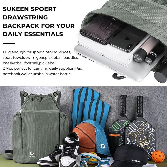 Sukeen Drawstring Backpack Swim Bag Lightweight String Backpack for Beach Pickleball Swimming Pool Gym Workout Gear Sport