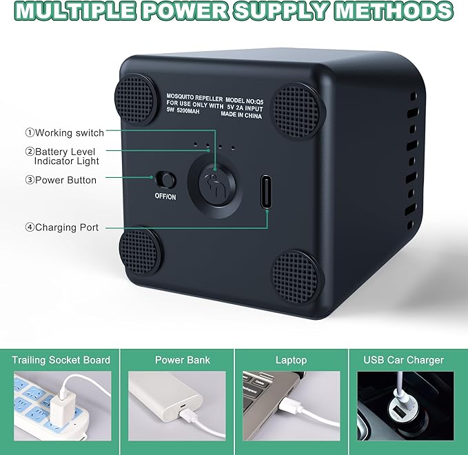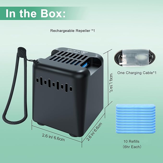 - 【HEAT-ACTIVATED TECHNOLOGY】This Outdoor Mosquito Repellent is Powered by a safe rechargeable battery. It provides 4 hours of continuous mosquito protection on a charge and fully charged in 4 hours. Type-C charging cable included. Wait for 15 minutes to achieve full effect.