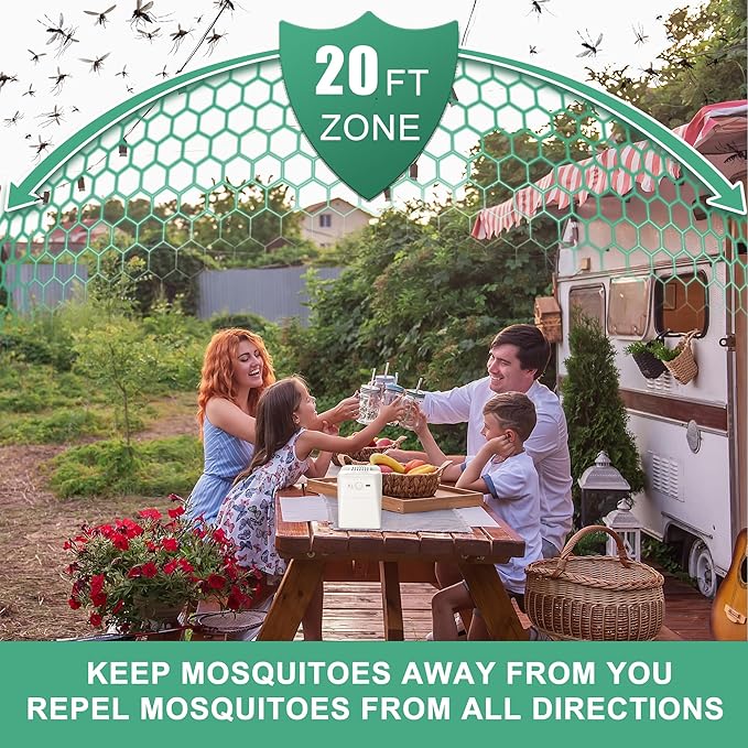 Mosquito Repellent Outdoor Patio, Rechargeable Indoor Mosquito Repeller with 20' Mosquito Protection Zone, For Camping