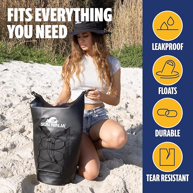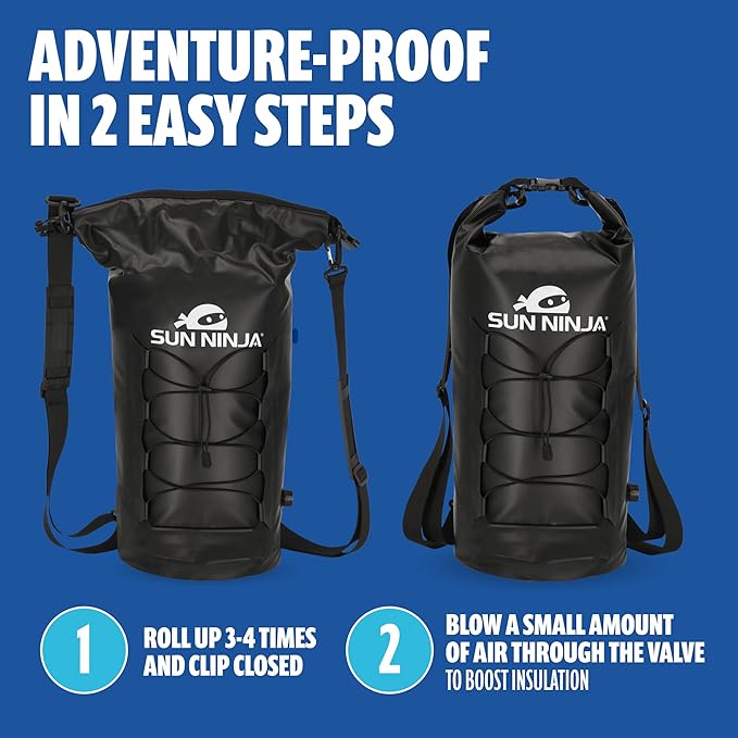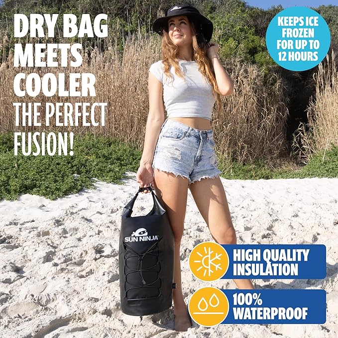 Sun Ninja Floating Dry Bag Cooler – Roll Top Leak Proof Closure, Collapsible, Waterproof Outdoor Cooler with Padded Shoulder Strap - Perfect for Kayaking, Fishing, Beach, Hiking -20L