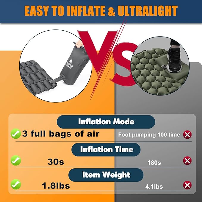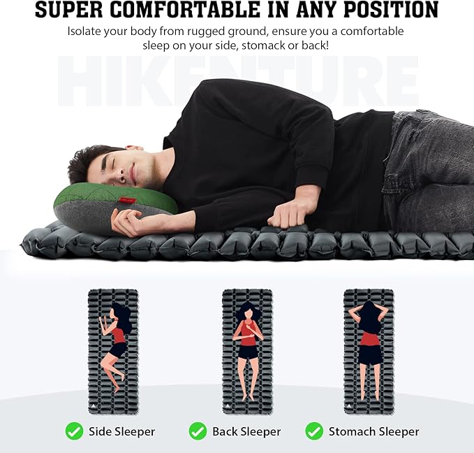- BRING BED-LIKE COMFORT TO THE OUTDOORS: Camping with your loved ones, family, or friends is an excellent way to unwind. Start your unforgettable journey with the Hikenture double sleeping pad, measuring 72" in length and 50" in width to comfortably fit two people, offering 2.8" of thick sleep support during your outdoor adventures.