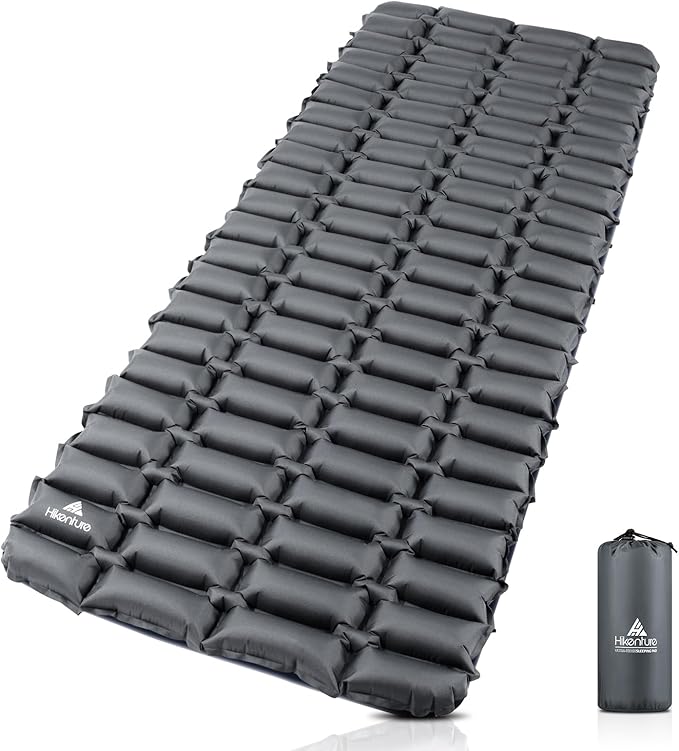 Hikenture Double Sleeping Pad,Ultralight Camping Mattress 2 Person,Backpacking Pad with Pump Sack,Inflatable Air Mat for Tent(1037-B2) (Grey, 72" L x 28" W)