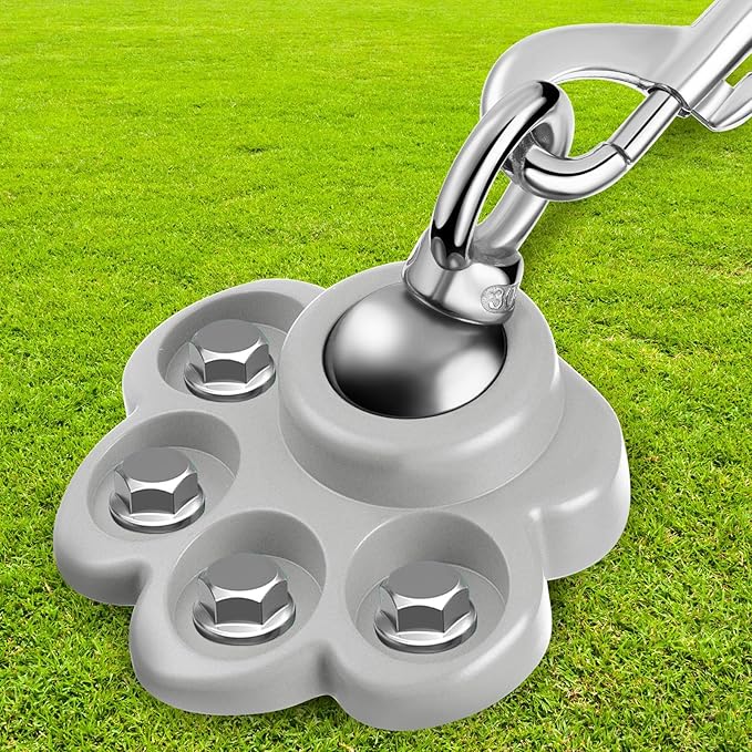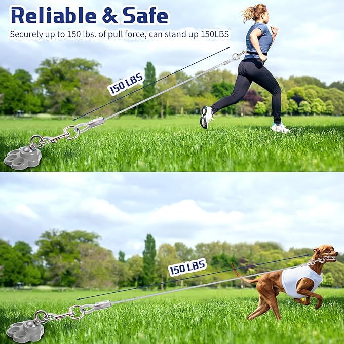 - Reliable and Safe Die Casting Process: made of aluminum alloy and 304 stainless steel die casting, can stand up to 150 lbs; Has been tested in stable ground to securely hold 1200 lbs; Please do not pull the stake vertically when you're testing the pulling force; When a dog pulls on a stake, it pulls it horizontally, making it much more difficult to pull the stake from this angle