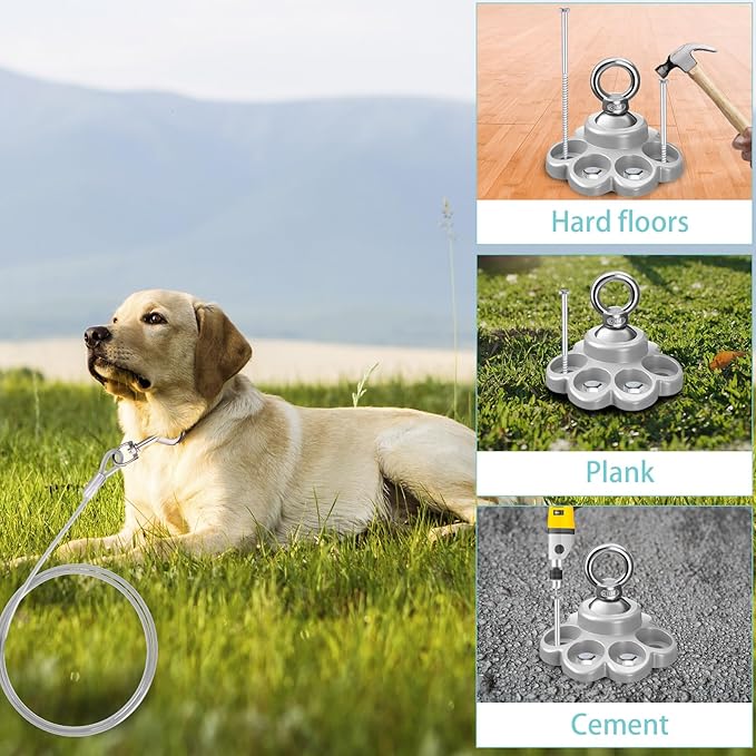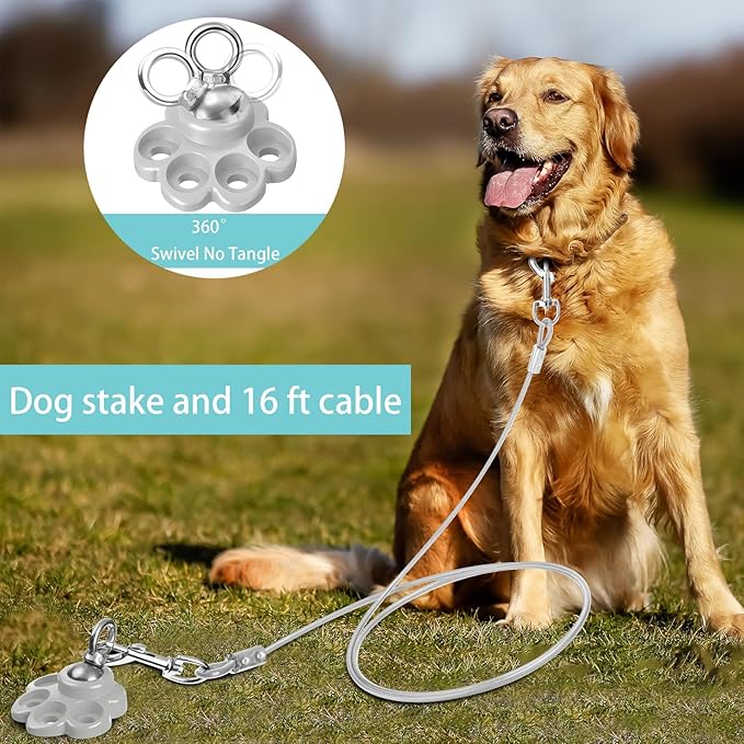- 360° Swivel and Tangle Free: designed with a full 360 degree swivel ball, let's your dog freedom to roam without tangle; Even multiple pets simultaneously, and continue to stay tangle free; The loop of swivel base is easy to attach your cable tie-out or leash
